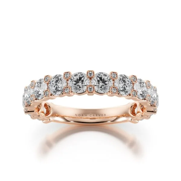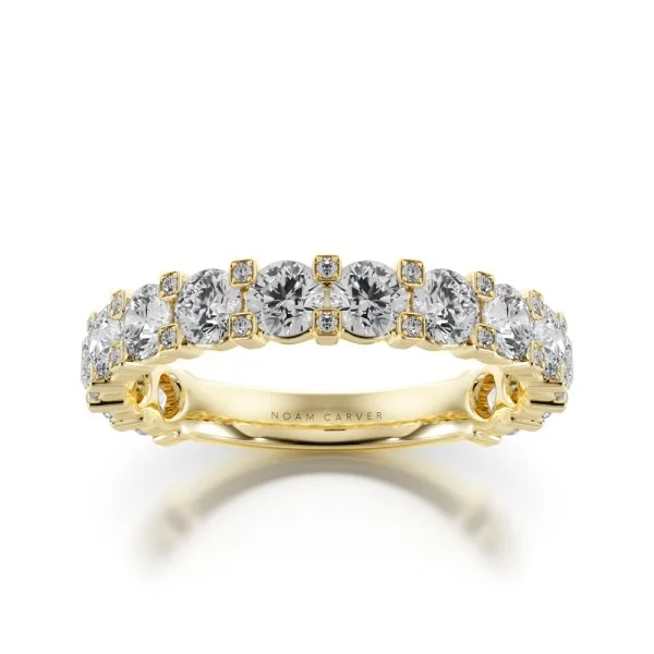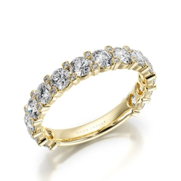 A perfect blend of modern refinement and timeless sparkle, the Three Quarter Eternity Diamond Band – Bezel Set Round showcases brilliant round diamonds in sleek, sculpted bezels. Designed for elevated everyday wear, this band offers a radiant presence while maintaining exceptional comfort and durability.