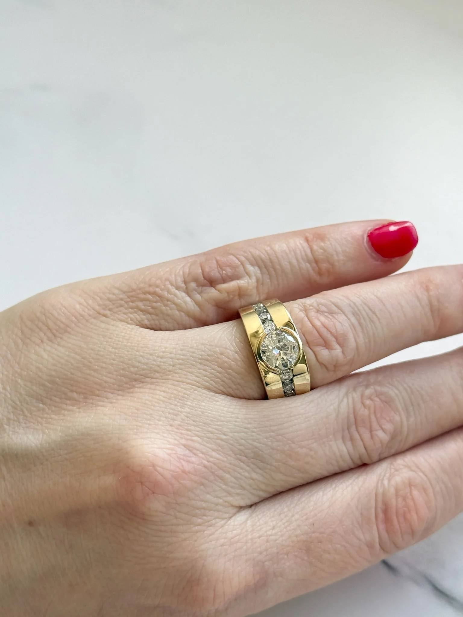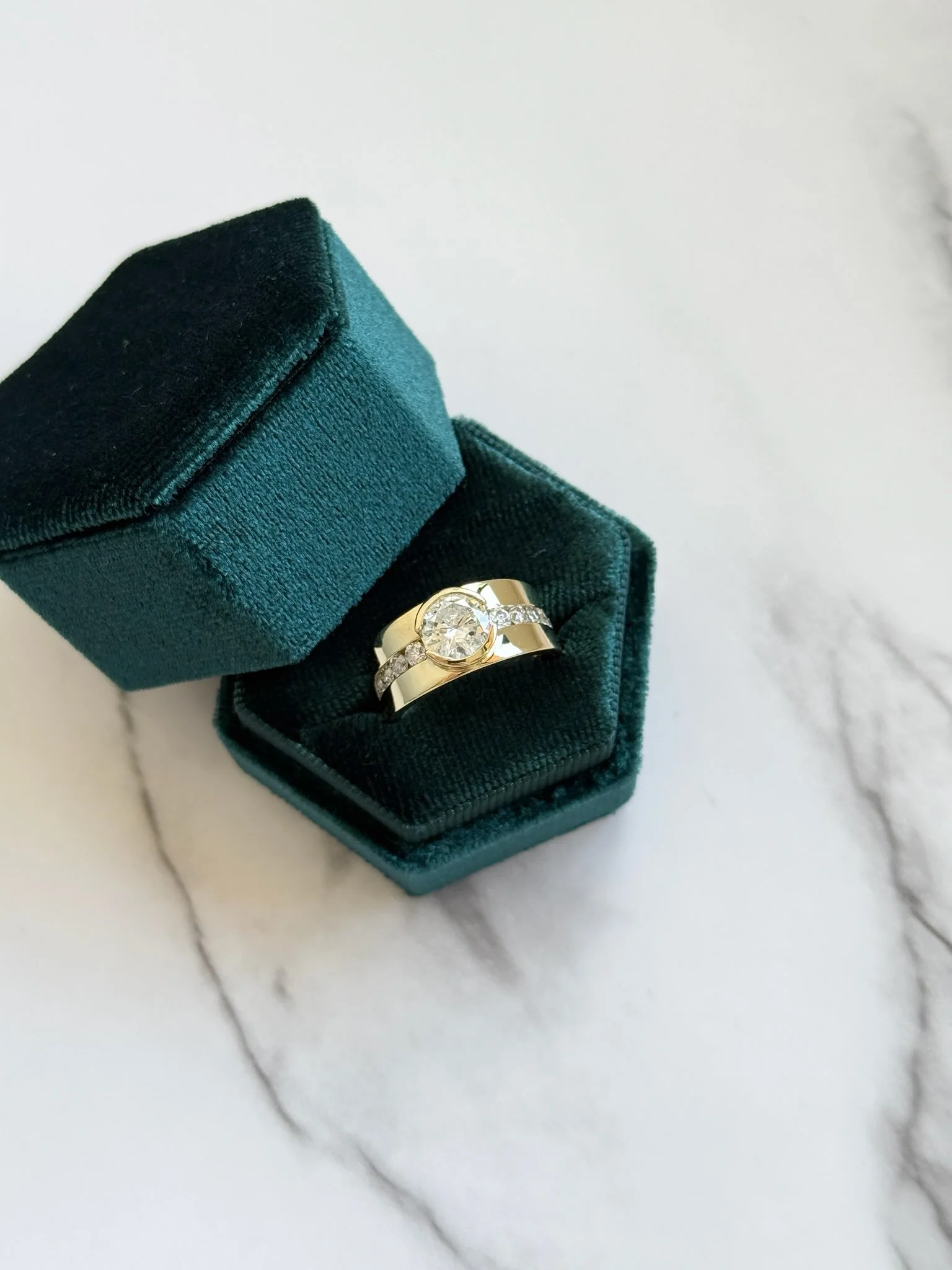 For the round cut diamonds, the client envisioned a design that stood out from traditional signets and offered a fresh perspective. After exploring various design iterations, we unveiled a chunky channel set ring that perfectly aligned with the client's desire for uniqueness and sophistication. This striking piece not only showcases the brilliance of the diamonds but also provides a bold and contemporary aesthetic that sets it apart from more common styles.